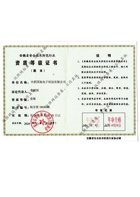 公司現(xiàn)已獲得承裝(修、試)電力設(shè)施許可證、電子與智能化工程專業(yè)承包壹級資質(zhì)、建筑裝修裝飾工程專業(yè)承包壹級資質(zhì)、消防設(shè)施工程專業(yè)承包貳級、安全技術(shù)防范行業(yè)壹級資質(zhì)、雷電防護(hù)裝置檢測資質(zhì)證乙級資質(zhì)、安全生產(chǎn)許可證、通過ISO9001:2015質(zhì)量管理體系認(rèn)證、ISO14001:2015環(huán)境管理體系認(rèn)證、OHSAS18001:2007職業(yè)健康安全管理體系認(rèn)證等榮譽(yù)。我們還將進(jìn)一步努力,爭取贏得更多的榮譽(yù)。